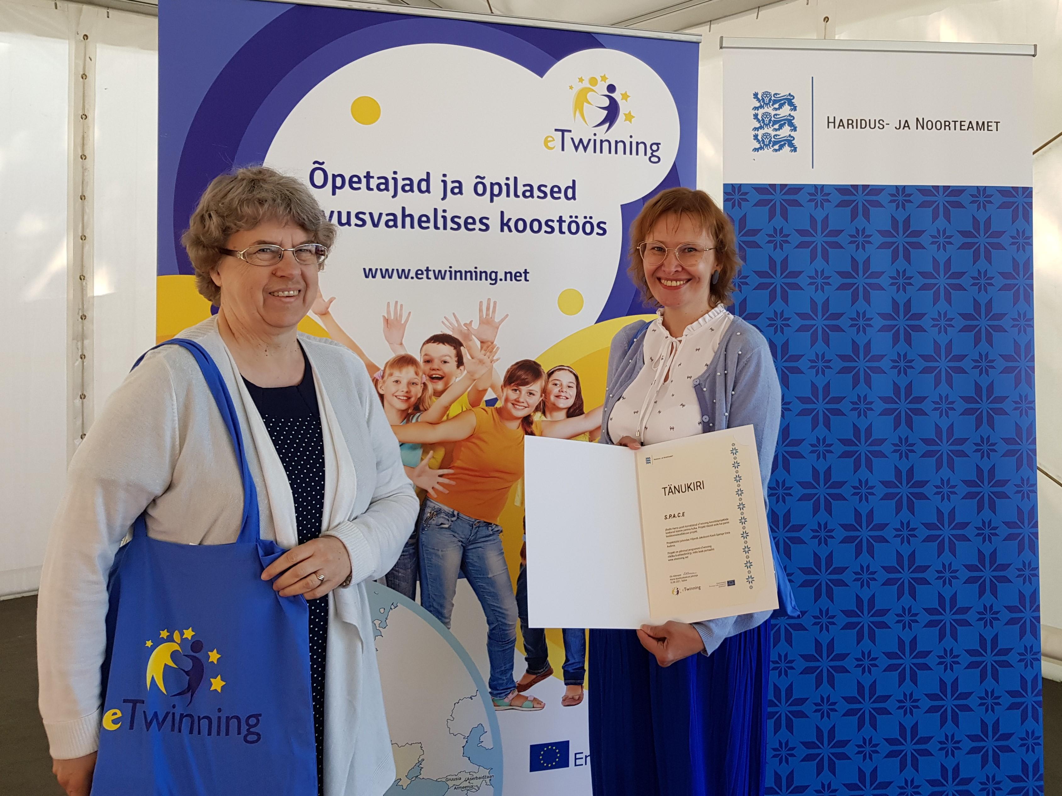 16. juunil osalseid õp Marje Maasen ja Enna Audova eTwinningu õppeaasta lõpuüritusel Maarjamäe lossipargis. Pidulikul tänuüritusel tehti kokkuvõtteid ja kuulutati välja parimad projektid. Meie kooli projekt S.P.A.C.E sai eripreemia kui parim keskkonnateadlikkuse projekt.