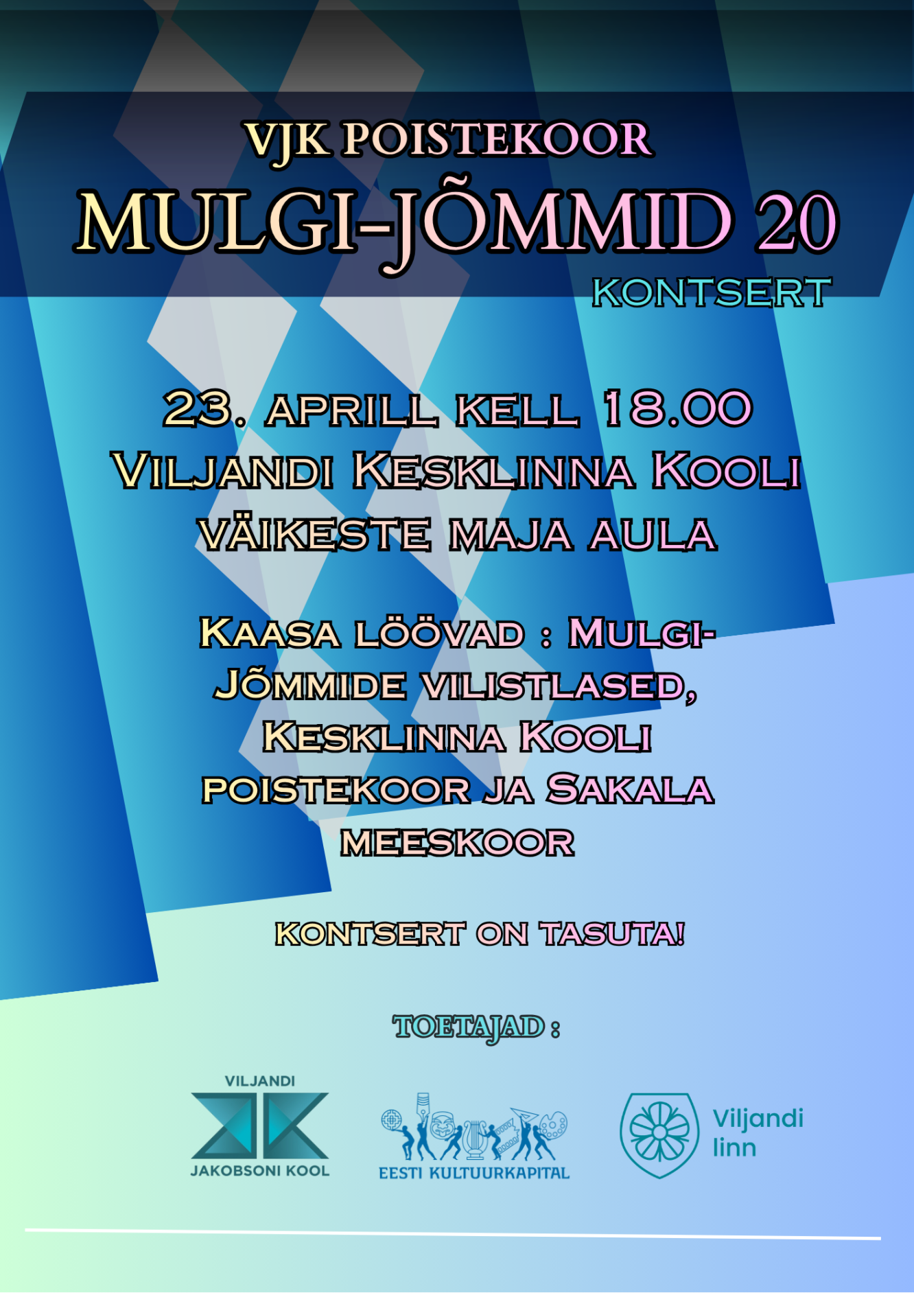 Viljandi põhikoolide moeshow "Lihtsuses peitub võlu" Loomise kuupäev 02.03.2026 Autor Moonika Pärna Viljandi põhikoolide 1.-4. kl õpilaste talendishow Loomise kuupäev 02.03.2026 Autor Moonika Pärna Viljandi õpetajate inspiratsioonipäev VJK-s Loomise kuupäev 17.02.2026 Autor Moonika Pärna Sõbrapäev VJK-s Loomise kuupäev 02.02.2026 Autor Moonika Pärna Vaata rohkem