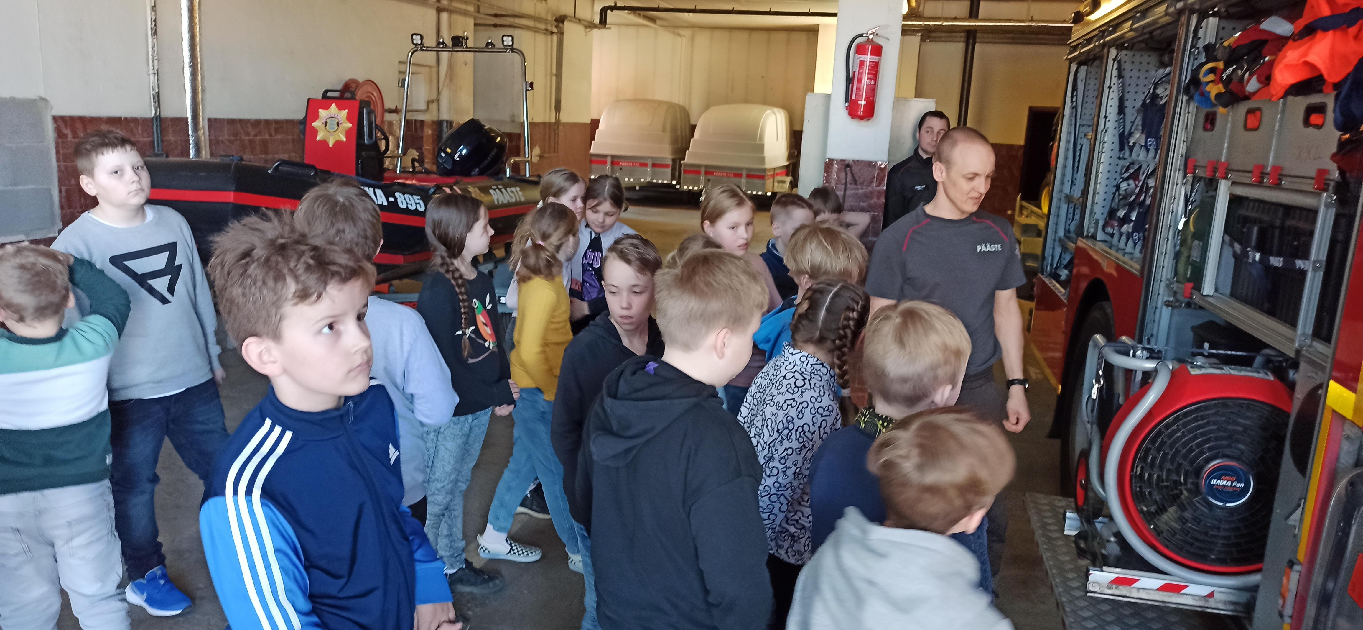 Osalesime koolitusel „Päästjatel külas”. Tuleb ette olukordi, kus päästetöötajad tõttavad inimestele väga erinevate ohtlike olukordade puhul appi. Oleme neil teemadel vestelnud ja vaadanud õppefilme. Nüüd kutsusid päästjad meid endile külla. Esmalt räägiti meile tule- ja veeohtudest. Selgitati erinevaid juhtumeid pilte ja teisi abivahendeid kasutades. Elevust tekitas ruum, kus pidime kõik valesti paigutatud tuleohtu tekitavad esemed üles otsima ning selgitama, mis peaks olema teisiti. Eriti põnev oli garaažis nähtu. Saime käia päästeautos. Käivitati „tuulemasin”, mis tegi võimsat häält ja tugevat tuult. Meile meeldis see külaskäik väga.